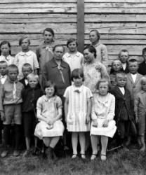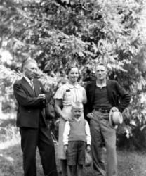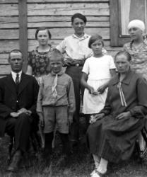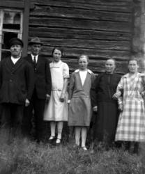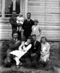 Edessä Eeti Hankaniemi, Oiva ja Lempi (os. Keisala), takana vas. tunnistamatta, Yrjö Forss, Tuuti ja Kerttu Forss.