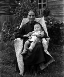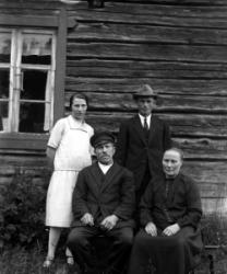 Istumassa Matti Holkko, Kaisa (ent. Kuivamäki). Seisomassa tytär Aino (Ilomäen emäntä) ja poika Väinö Holkko.