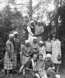 Vas istuu. Elma Lahola, takana kans pukuinen. Iida Isoaho, Maria Pitkäaho myöh. Heinämäki, Mäkiranta. oik. Maria Kaunisharju, Maija Lehtomäki. Marian vierellä Heidi Kosola os. Välkky.