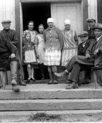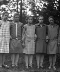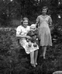Ovella edessä Rauha Paavola myöh. Tarkiainen, takana Elli Paavola.