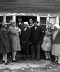 Saarimäen vanhatupa. Ida ja Vilho Saarimäki, Hilma ja Jenny Kortesmäki, keskellä Lempi ja Aleksi Panula, Heikki ja Jenny Peurala, takana Aleksanteri ja Liisa Saarimäki.