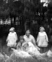 Anna Haapa-aho (myöh. Pennala), ?, Helka Haapa-aho (myöh. Hakojärvi), kesk. Maria Haapa-aho (myöh. Koivisto, lapset Ilta, Eeva ja Tuula)
