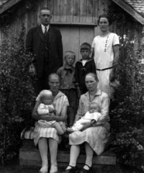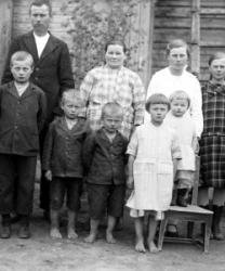 Vasemmalta Marja,Helka,Veikko,Annikki,Johanna,Anna ja Uuno Haapa-aho.