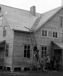 Rakennus takana entinen pappilan renkitupa, joka muutettiin seurakuntataloksi, Töysä.