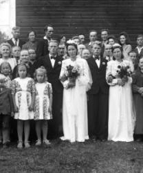 Hääparit Tenho ja Mirjam (os. Lamminaho) Orpana sekä Viljo ja Irma (os. Lamminaho) Orpana. Kaksoishäät 10.8.1946 Hakojärvi.