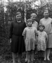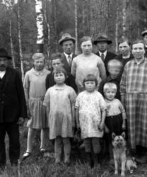 Järvisen perhe 1931, vas. Juho, Helmi, Urho, Annu, Juho, Hilda, Aino, Eino, Arvo, Viljo, Hilma, Lyydia ja Väinö