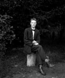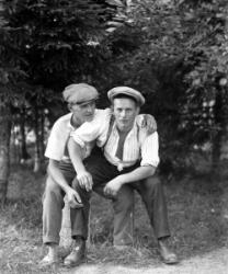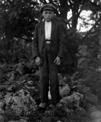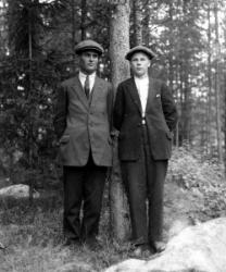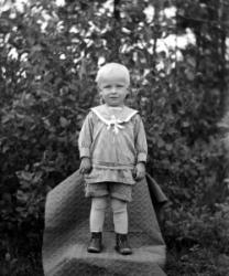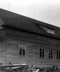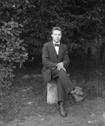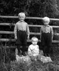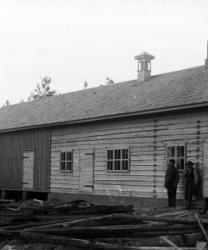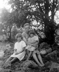 Rippilapsia Töysän pappilan pihalla olevassa seurakuntatalon nurkalla, ent. renkitupa. Oikealla kirkkoherra Väinö Tuomola.