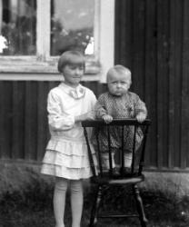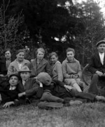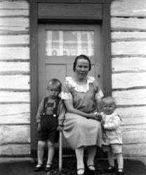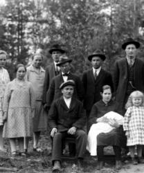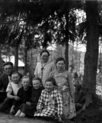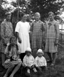 Vas. Arvo, Maija, Iida, Saima Hakomäki, Kerttu Ylä-Hakomäki, takana Hilda ja Elli Ylä-Hakomäki