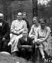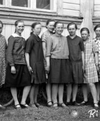 Takana Maria Pohjala (s. Jaakkola), vas. Siiri Aho, Lyydia Hakala, Gertti Manner, edessä Kirsti Hakala