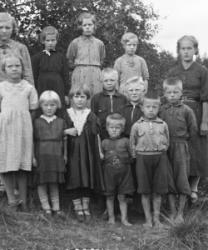 Kerttu Heinämäki, Toivo ja Matti Kleimola, Taisto, Terho ja Albert Antila, Saima Lehtonen nyk Simonen. Pyhäkoululaiset."
