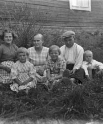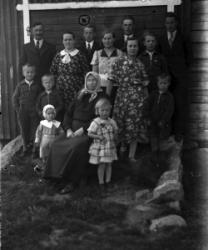 Takarivi vas. Peltonen Vihtori, Sulo, Eino ja Tauno. Seur rivi. Iida (Vihtorin vaimo), Tyyne (Einon vaimo) ja Vilho. Seur rivi. Ilmari, Urho, Katri Holkko (myöh. Ritala) ja Paavo. Edessä vas. Tarmo, istumassa Hanna Riihimäki, oik. Helinä.