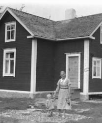 Vas. Hilda Virtanen os. Kivistö, edessään tytär Mirja Anna Kyllikki Virtanen, oik. Anni Myllyaho os. Kivistö, edessään tytär Eeva.