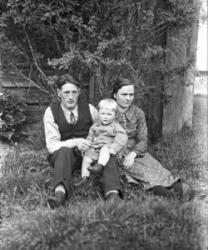 Olga Selkämaa, oik. Hanna Vanhamäki os. Selkämaa, takana mies Teemu Vanhamäki vierellään poika Toivo.