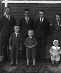 Peltosen pojat, Takana vas. Eino, Tauno, Sulo, ja Vilho. Edessä vas. Ilmari, Urho ja Tarmo Peltonen, veljekset.