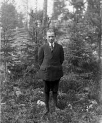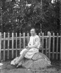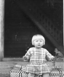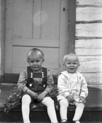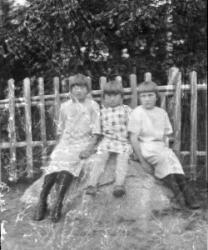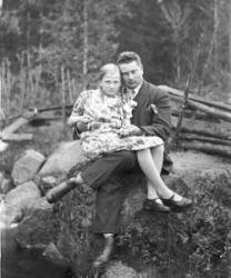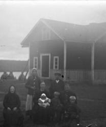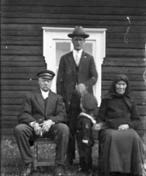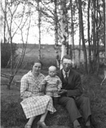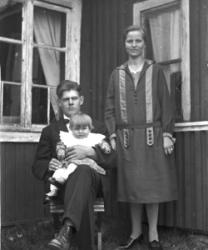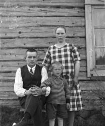 Antila Kalle ja Hilda, Terttu Juulia istuu Kallen sylissä, kuva otettu Mutkan Niilon talon toiselta puolelta.