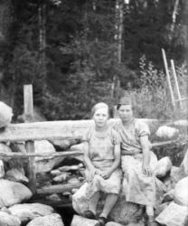 "Takana Reino Härkönen, takana oik. Sofia ""Fiia"" Härkönen, vas Impi myöh. Valtaala, Elli Härkönen"