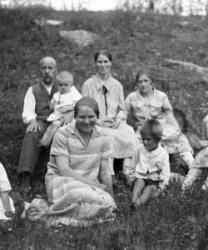 Takana vas. Paavo, Oskarin sylissä Kalervo, Anna, Iida Pennala. Edessä vas. Mirjami, Fanni Pennala, Matti ja Lempi Pennala. Mäkisen lapset: Paavo (puutarhuri), Mirjami (terveydenhoitaja), Matti (insinööri, paperitehtaan johtaja), Kalervo (lääkäri).