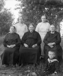 Keskellä istumassa: Erkki Peltomäen puoliso Ida Kustaantytär Peltomäki os. Mutka (1869-1945).