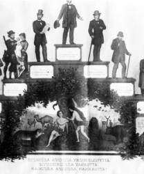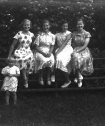 Viljo, Irma, Mirjam, Tenho Orpanan kaksoishäät Hakojärven raittiusyhdistyksen talolla 10.8.1946