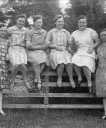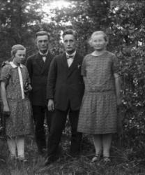 Martta Aho (myöh. Periaho), Alli tai Aili Hakomäki (myöh. Ala-Vannesluoma, myöh. Aho), Reino Uusitalo, Albin Aho, Maija Hakomäki (myöh. Viitala).
