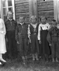 Helka Pelander ja lapset tak. vas. Senja Kortesmäki, Tyyne Kortesmäki, Taimi, keskirivi vas. Olavi, Rauha, ?, Paavo Pelander (myöh. Pela), edessä Arvo, Aino, äiti Helga (os. Kortesmäki)sylissään Lilja, Aila ja Lauri.