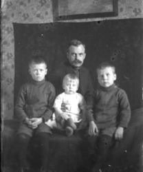 Urpo Kekoni (isä, ammatiltaan linjatarkastaja), pojat vas. Kari, Matti ja Pentti. Töysän asema.
