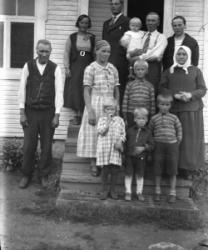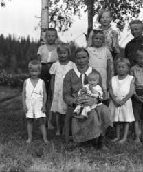 Helga Pelander ja lapset, tak. Taimi Maria (myöh. Pelander), keskirivi Olavi, Rauha, Paavo, äidistä tak. vas. Aino, äidin vieressä vas. Arvo, äiti Helga (os. Kortesmäki), sylissä Lilja, Aila ja Lauri.