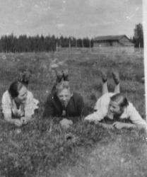 vas. Helga Pelander os Kortesmäki vas puolella Olavi ja Rauha P. Sylissä Aino P.