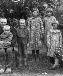 Hannes ja Ruusa Ylä-rautio perheineen. Sylissä Pentti, Paavo, Linnea (kuoli nuorena), Oili ja Kaarina.