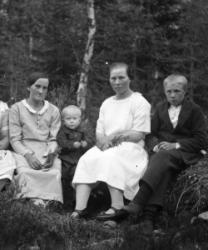 1. Vas. Impi Ilomäki (myöh. Peltomäki), 2. vas. Sanni Ilomäki (os. Ala-Salmi), Vilho Ilomäki Hilda Ilomäki (myöh. Pykälämäki) ja Onni Koskela.