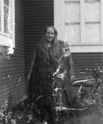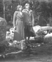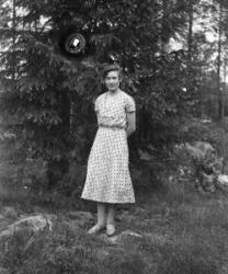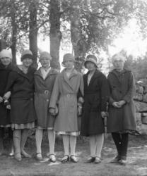 Vuonna 1914-15 syntyneet rippikoulutytöt Töysän kirkon kiviaidan edessä. Toinen vas. Hilda Koskela, kolmas oik. Hilda Kyllikki Heikkilä myöh. Ylä-Mikkola, Peltonen.