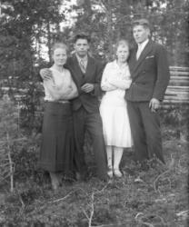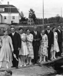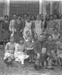 Paavo Riihimäki, vierellä Riihimäen emäntä, Toimi Rankila, Haapanen. Toini Tyrni Koskenaho, toinen rivi Helmi Autio Koskenaho,