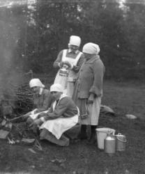 Takana vas. Hilma Kortesmäki, Hilma Rantala, Ellen Kortesmäki ja Bertta Heinämäki.