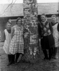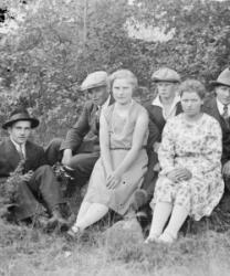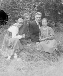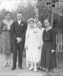 Juho Haapa-ahon ja Sandra Kanervan häät 15.10.1927. Vas. Anna Haapa-aho (Juhon sisar), Juho ja Sandra, Helmi Kanerva (kauppias Alex Kanervan puoliso), takana Saima Lehtomäki.