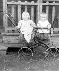 Kaksi lasta rattaissa. Kuvaajana Verner Vanhamäki