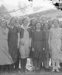 Otettu 28.5.1933. Jussi Suutala, Taimi Haapanen (Rankila), Helli Pirttimäki (Paavola, Eeva Kukkola (Paavola), Saima Mutka (Toivola), Rauha Salmi (Alaniemi), Reino Raiski, Vilhelmiina Herrala (Katajamäki), Elli Fräntilä (Sorila), Esteri Riihimäki (Toivola), Lea Niemistö (Rankila), Asteri Antila, Saima Aho, Aino Harju (e Hautala s. Kukkola), Aino Pyylampi (Raiski), Anni Peltoniemi (Raiski), Anni Laurila (Herrala), Kalle Suutala, Reino Haapanen, Aili Anttila (e Ruuhela s. Hautala), Väinö Mukka, Lyydia Pakkala, Esteri Virtanen, Saara Pelander."