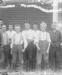 Virtasen suutareita. vas. 1. Oskari Virtanen, takana toinen. Jani Katajamäki. Vas 4. Sauli Virtanen, 5. Eero Kivistö, Olavi Lahtinen, oik. Erkki Kivistö.