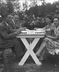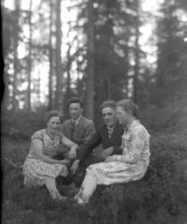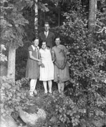Aili Mesimäki, Aino ja Kuosti Kontoniemi, (Aino os. Valtee), vihitty 22.8.1931. Kolmas oik. rovasti Väinö Tuomola, alhaalla oikealla Tyyne ja Eino Kantoniemi.