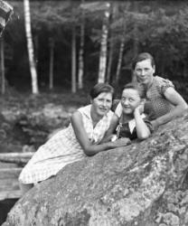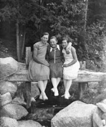 vas. Saima Mähönen nyk. Korhonen, Helga Flykt, oik. Esteri Koivisto os. Uusimäki, takana Myllyaho.